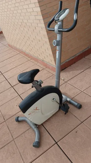Bicicleta estática marca D3 de Decathlon. Ideal para entrenamientos en casa. - Sillín acolchado con funda extraíble aparte. - Pantalla digital, 4 modos: tiempo distancia, calorias y - Manillar ergonómico. Funcionando como nueva, casi no se ha usado. Se regala comprando el pack Artes Marciales Decathlon.