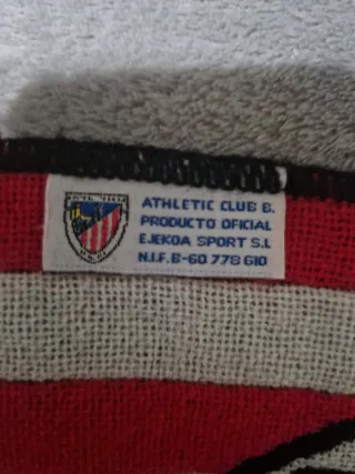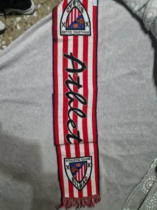Bufanda oficial del Athletic Club de Bilbao. - Diseño a rayas rojas y blancas. - Escudo del club bordado en los extremos. - Texto Athletic bordado en el centro.