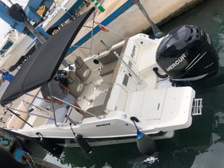 Precio negociable Quicksilver sundeck 755 del 2017. En perfecto estado ideal para salidas con familia, gran espacio en popa y proa. ITB. Camarote perfecto pasar unas noches, con baño interior. Revisiones anuales y antifouling al dia des del 2017.Mercury Fourstroke 250hp ideal, 40 nudos de velocidad máxima. Estructura extra popa para aumentar el solárium trasero Radio VHF Sonda SIMRAD 2 bombas de sentina automáticas Nevera WC marino Mueble exterior extra con pica y fogón Muy buenos acabados Mesa de teca en bañera Mesa teca camarote Escalera de baño Ducha en bañera Cojines originales Toma corriente popa Ancla automática