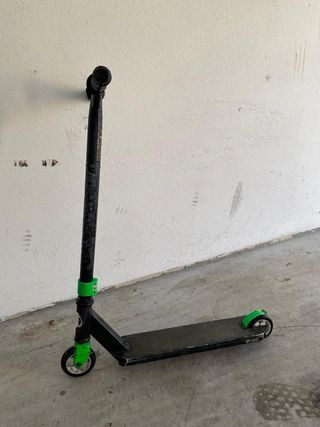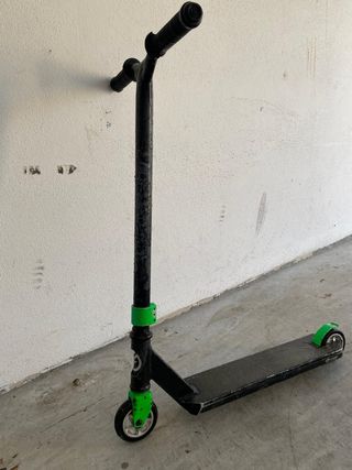 Patinete manual en buenas condiciones, ideal para principiantes. Tiene algunos rasguños del uso, pero está en perfecto estado para su uso. - Marca: Oxelo - Color: Negro con detalles verdes - Ideal para trucos y saltos
