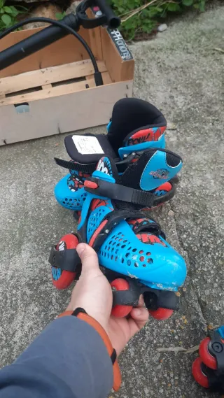 Estos patines de 4 ruedas son perfectos para divertirse. Tienen un diseño llamativo y son cómodos de usar. Cierre de velcro para un ajuste seguro. Tengo 2 pares: Talle 23-27 (20€) Talle 28-32 (20€) Precio por ambos 30€