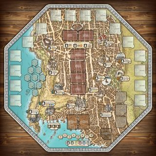 Tapete de juego para Lords of Waterdeep. El tapete muestra el mapa detallado de la ciudad y sus alrededores. Varios modelos a escoger Primero 94x94cm 21€ Textos en ingles Segundo 68x53cm 12€ Tercero 98x57cm 16€ Fabricado en punto de neopreno con foam de 3mm y borde remallado. - Diseño inspirado en el universo de Waterdeep. - Ideal para partidas de mesa.