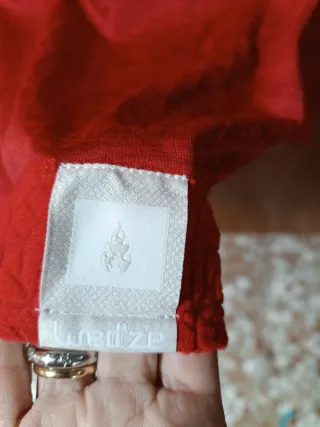 Camiseta térmica de manga larga en color rojo, ideal para actividades en la nieve o días fríos. Diseñada para ofrecer comodidad y abrigo. Reversible. Para usarla dependiendo del frío que haga. - Cuello alto tipo polaina. - Tejido suave y elástico. - Puños y bajo con acabado acanalado.