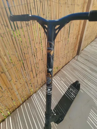 Patinete de estilo libre Ethic DTC. - Diseño en color negro. - Manillar con puños negros. - Plataforma ancha para mayor estabilidad. - Ruedas delanteras y traseras.