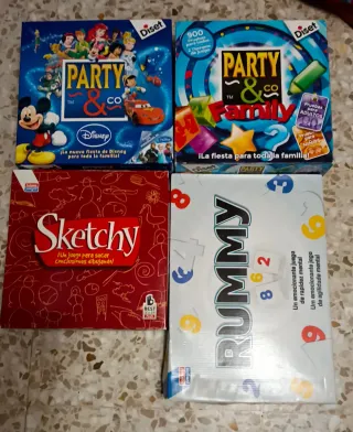 Lote de 4 juegos de mesa en perfecto estado , solo al de disney falta nemo de carton Los 4 por 15€ , solo el party ya costó 40€ - Party & Co Disney - Party & Co Family - Sketchy - Rummy