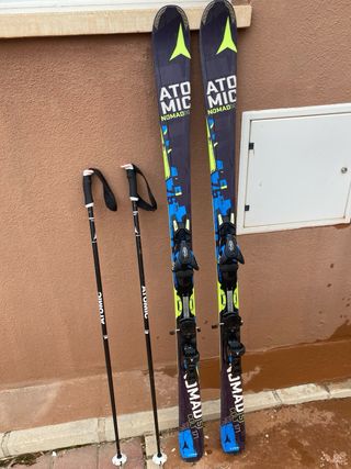 Esquís Atomic Nomad de 171 cm con fijaciones Atomic XTO12 y bastones Atomic. Muy bien cuidados con pequeños roces de uso.