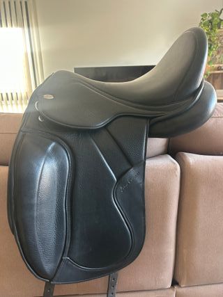 Jorge Canaves Celebration es una de las sillas de doma más apreciadas por su equilibrio entre elegancia y funcionalidad técnica. Fabricada con doble piel de becerro (doubliert) que ofrece un agarre excepcional y una sensación de suavidad desde el primer uso. Equipada con un armazón ajustable en frío (generalmente un armazón, lo que permite a un profesional modificar la apertura de la cruz entre 28 y 40 cm para adaptarse a cambios en el caballo. - Color negro. - Diseño elegante y funcional.