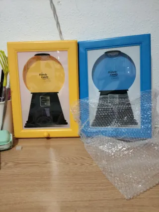 Lote de dos .Cuadro/ marco ,para poner en la pared,se puede llenar d Lacasitos o...y se dispensan por la parte inferior.Sin uso. Medidas:29,5 por 21 cm.por 2 cm.hondo. Tiene su caja correspondiente cada uno.