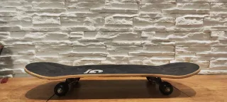 Patineta con diseño clásico y ruedas negras. - Tabla de madera. - Lija negra. - Ruedas negras.