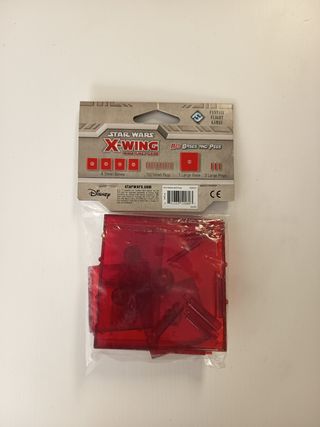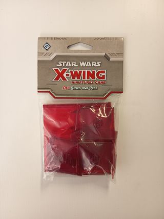 Bases y soportes para el juego de miniaturas Star Wars X-Wing. - Color rojo. - Incluye 4 bases pequeñas y 1 grande. - Precintado.