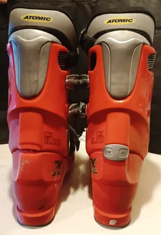 Botas de esquí Atomic en color rojo y gris. Talla 29, lo que es una 44-45. - Cierre con 4 ganchos metálicos. - Correa de velcro en la parte superior. - Logo de Atomic en el lateral. A una de las botas le falta una pestaña trasera, se ve en las fotos.