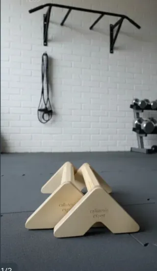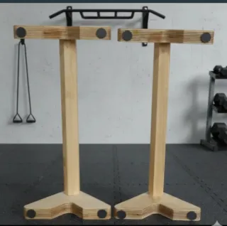 Paralelas de madera para entrenamientos de calistenia. Son robustas y perfectas para ejercicios. - Fabricadas en madera. - Diseño estable para mayor seguridad. - Ideales para rutinas de fuerza y estiramientos. - Mango ergonomico, en forma optogonal para un agarre sin deslizamientos, de 40mm de diametro. - Medidas 22cm ancho,12cm alto,48cm largo