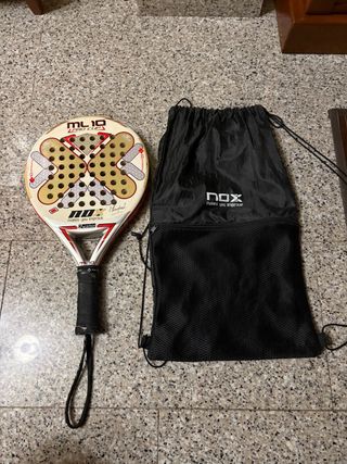 Pala de pádel NOX ML10 Pro Cup con funda. - Pala de pádel. - Funda de tela negra con logo NOX. -Desgaste visible en las fotos