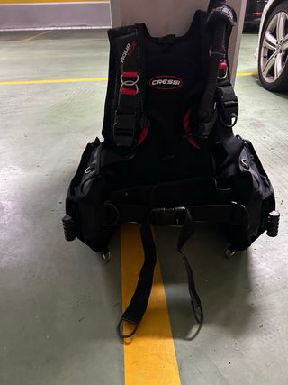 Chaleco de buceo Cressi Aquaride en talla M. Ha tenido poco uso. - Color negro con detalles en rojo. - Cierres y hebillas Cressi.