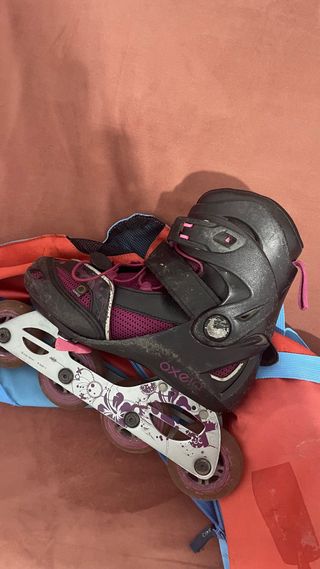Botas de patinar con un diseño llamativo en rojo y azul. Son cómodas y prácticas. - Cierre de cremallera. - Correas de sujeción. - Material resistente.
