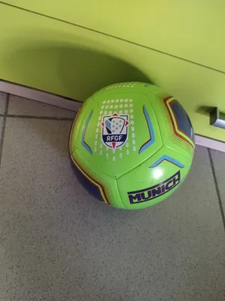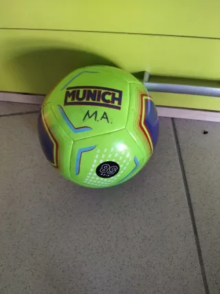 Balón de fútbol sala de la marca Munich. - Color verde lima con detalles en azul y rojo. - Diseño con paneles y logo de la marca. - Tamaño 58.