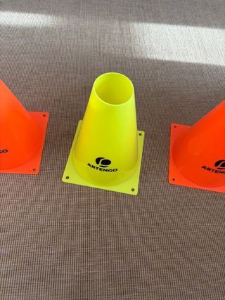 Pack de 6 conos de delimitación de la marca Artengo. Son de color amarillo y miden 19 cm de alto. - Marca: Artengo - Cantidad: 6 conos - Altura: 19 cm