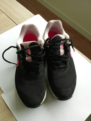 Zapatillas deportivas Nike para niña en talla 36.5. Perfectas para el día a día o para hacer deporte. - Color negro con detalles en rosa. - Cierre con cordones. - Logo de Nike en los laterales.