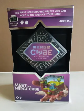 El Merge Cube es un objeto holográfico que puedes sostener en la palma de tu mano. Permite manipular objetos digitales en 3D (hologramas), permitiendo una forma completamente nueva y poderosa de aprender ciencia. Regalo, escuela, colegio,...