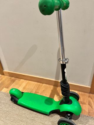 Patinete infantil de tres ruedas Glider, ideal para los más pequeños.l, muy estable con las 2 ruedas delanteras. Venta solo presencial - Diseño en color verde brillante. - Manillar ajustable en altura. - Plataforma ancha para mayor estabilidad.