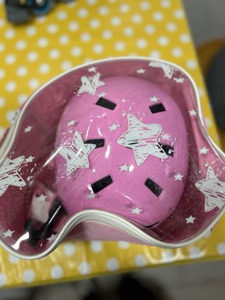Casco rosa con estrellas y bolsa
