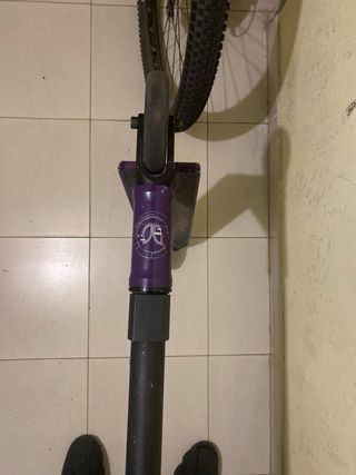 Scooter de pie marca BlazerPro, ideal para patinaje urbano y trucos. - Manillar negro con puños de goma. - Tabla de color morado. - Ruedas negras.