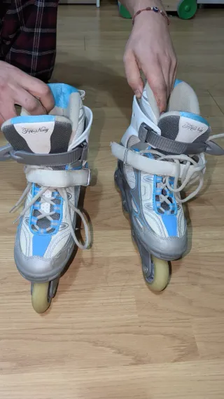 Patines en línea blancos y azules