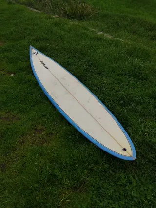 Tabla de surf tipo Gun de 8 pies y 6 pulgadas. Ideal para olas grandes. - Diseño clásico. - Color blanco con borde azul. Gun , pincho , pintxo
