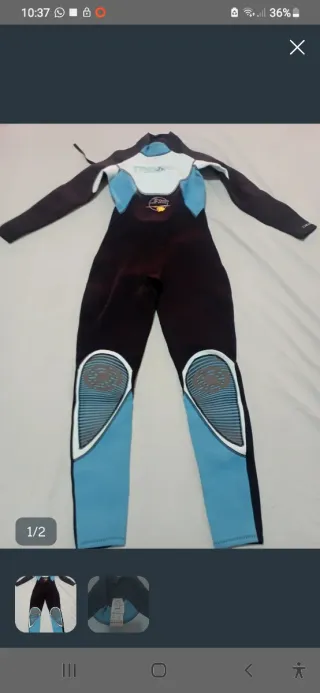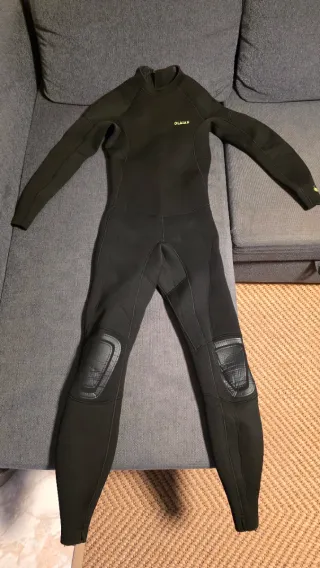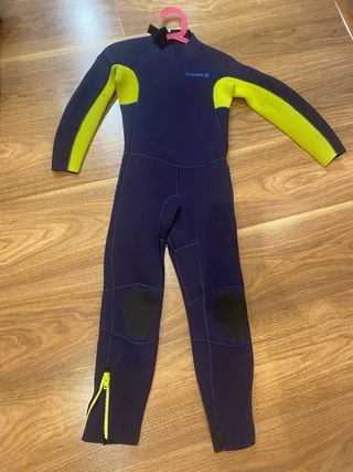 Traje de neopreno de la marca Tribord, de Decathlon. 2.0 mm, prácticamente nuevo - Color negro y azul. - Diseño de manga larga y pernera larga. - Detalle de protección en rodillas.