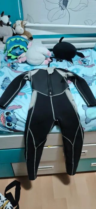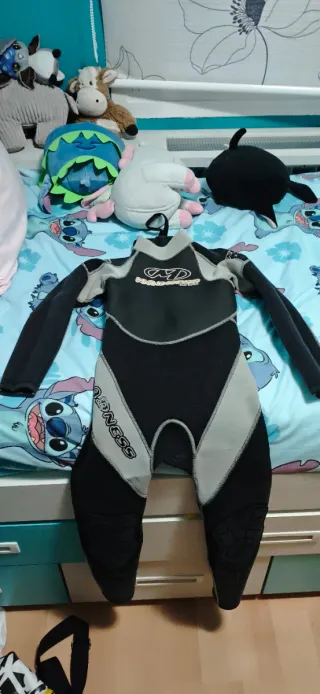 Neopreno infantil de invierno, enterizo. - Talla M. - Diseño de manga larga y pernera larga. - Paneles grises y negros. - Cremallera frontal para facilitar su uso. - En perfecto estado y sin ningún tipo de roto . - Es super caliente y tiene acolchadas las rodillas .