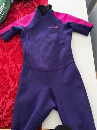 Neopreno de manga corta de la marca Olaian, ideal para deportes acuáticos. - Color morado y rosa. - Talla 3-4 años. - Cuello redondo. No está nuevo pero si en muy buenas condiciones. Precio 5€ TODO ROPA NIÑA Y JUGUETES EN MI PERFIL