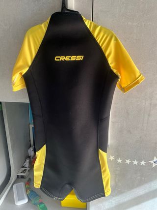 Traje de neopreno Cressi de una pieza, ideal para actividades acuáticas. - Talla 2XL. - Color negro y azul. - Cremallera frontal diagonal para facilitar su uso. - Neopreno de 3mm de grosor. - Tejido elástico Ultra Stretch. NUEVO A ESTRENAR, PRECIO ORIGINAL DE 180€