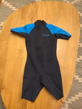 Traje de neopreno para niño de 12 a 13 años, en buen estado. - Color azul y negro. - Manga corta. - Cremallera en la espalda. Solo lo uso una vez en el campamento