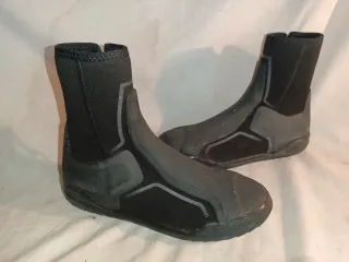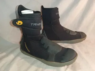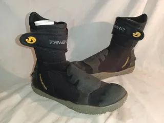 Se venden Escarpines Tribord BOT 770 de Neopreno para Buceo o Surf. Talla 42/43. En MUY BUEN ESTADO. Neopreno de 7mm biforrado. Refuerzo puntera, talonera y suela dura. Ajuste tira de velcro. Escarpines de neopreno de la marca Tribord, ideales para deportes acuáticos. - Material: Neopreno. - Cierre de velcro ajustable. - Suela de goma antideslizante. - Diseño en color negro con detalles en gris.