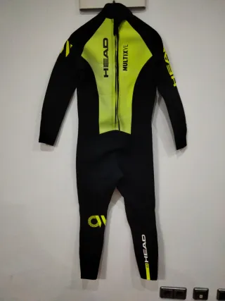 Neopreno multideporte HEAD de 2.5 mm de grosor. - Talla L (como referencia: mido 177, peso 73kg y me queda bien, ajustado). - Adecuado para cualquier deporte acuático (natación, surf, triatlón, kite, body, etc.). - Literalmente usado 10 veces para competiciones de triatlón. Lo vendo porque he comprado otro más específico para natación.