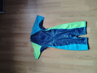 Traje de neopreno infantil Nabaiji (Decathlon), talla 6 años. Es de color azul marino, verde lima y azul claro. Muy poco uso. - Marca: Nabaiji. - Talla: 6 años (115-124 cm). - Diseño colorido.
