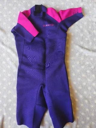 Neopreno de manga corta para niña de la marca OLAIAN de DECATHLON. - Color morado y rosa. - Talla 12 años.(143-152cm) - Ideal para deportes acuáticos. - Solo se ha utilizado en 1 ocasión.