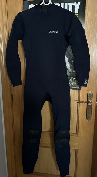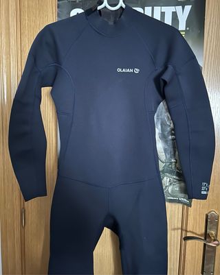 Traje de neopreno completo de la marca OLAIAN TALLA S - Color negro. - Diseño con mangas largas y perneras largas. - Reforzado en las rodillas