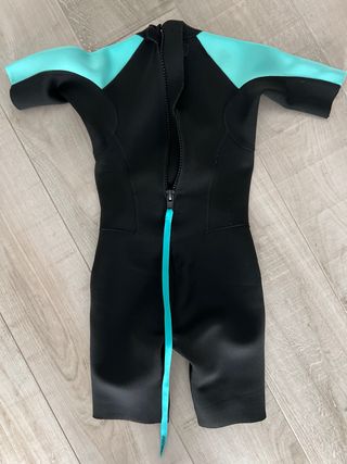 Traje neopreno piscina talla 12 años con tira en la cremallera para su auto-dependencia comprado en Decathlon usado 3 veces ( el de verde es el modelo que hay ahora mismo en decathlon)