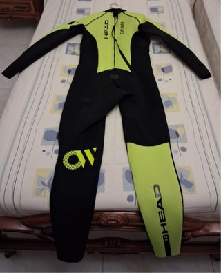 Traje de neopreno HEAD Explorer con cremallera frontal. Diseñado para actividades acuáticas. - Color principal: negro y verde lima. - Logo HEAD en la pierna derecha. - Logo av en la pierna izquierda. - Cremallera frontal para facilitar su uso.