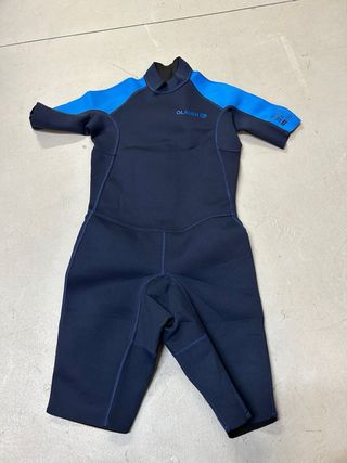 Traje de neopreno corto de la marca Tribord, ideal para actividades acuáticas. - Color azul y negro. - Talla 110 cm.