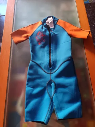 Traje de neopreno corto para niños, ideal para actividades acuáticas. Diseñado para ofrecer comodidad y protección. - Color turquesa 10 eur - Color azul naranja 10 eur. - Cremallera frontal. - peces, caballito de mar.