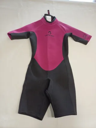 Trajes de neopreno corto para niño de la marca Tribord, ideal para actividades acuáticas. tengo 2,uno para talla 2 años y otro para 3-4 años - Color fucsia y negro. - Manga corta. - Cierre de cuello.