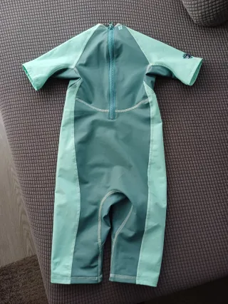 Neopreno para bebé, ideal para matronatación. Protege del frío al entrar y salir del agua en las clases ahora en invierno. También para el mar. 50 upf de protección solar navanji de decathlon. Para 1 año o menos porque es muy ajustado. Está nuevo sin estrenar porque le quedaba pequeño y ya no lo podíamos cambiar. Las marquitas del neopreno es de estar guardado. - Color azul con detalles en verde lima. - Talla 18 meses (altura 78-81 cm). Pero talla pequeño, mero 12 meses. - Cierre de cremallera trasero. Mono peto cosido a parte Superior se une a la chaqueta