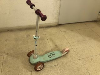 Patinete de tres ruedas en color menta, ideal para los más pequeños. Las ruedas delanteras se iluminan al rodar. - Tres ruedas para mayor estabilidad. - Puños de goma para un agarre cómodo. - Plataforma antideslizante.