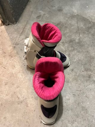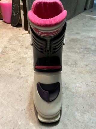 Botas de esquí con un diseño moderno y cómodo. - Interior forrado en color rosa vibrante. - Exterior en color blanco y detalles en azul marino. - Cierres ajustables para un ajuste perfecto.