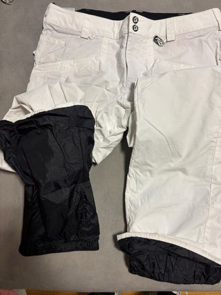 Pantalón de esquí de la marca Volcom en color blanco. talla L 8000 columnas de agua - Cintura con trabillas para cinturón. - Cierre de cremallera y botones. - Bolsillos frontales. - Logo de la marca visible.