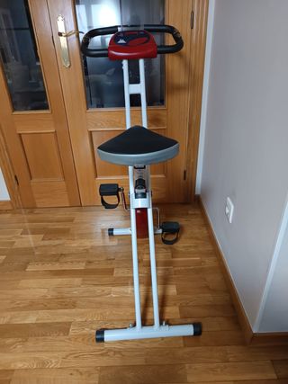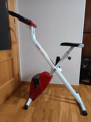 Bicicleta estática para ejercicio en casa. Su diseño es compacto y fácil de usar. - Estructura de metal resistente. - Asiento acolchado. - Pedales con correas de sujeción.