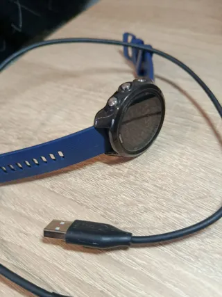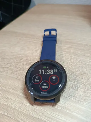 Reloj deportivo Garmin Forerunner 245 en color azul. - Muy ligero. - Notificaciones. - Seguimiento de rutas. - Correa de silicona y otra de repuesto. - Pantalla sin marcas.