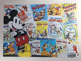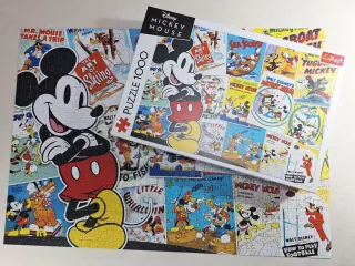 Puzzle de 1000 piezas con un diseño clásico de Mickey Mouse y sus amigos. - Ilustraciones vintage de Disney. - Incluye escenas de Mickey, Goofy y Pluto. - Ideal para coleccionistas y fans de Disney.